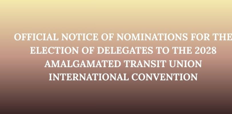 OFFICIAL NOTICE OF NOMINATIONS FOR THE ELECTION OF DELEGATES TO THE 2028 AMALGAMATED TRANSIT UNION INTERNATIONAL CONVENTION As per Section 6.7 of the Constitution and General Laws, this bulletin will serve as notice that there will be an election for … Read More