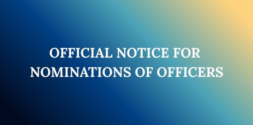 Term of Office: January 1, 2026 to December 31, 2028 OFFICIAL NOTICE FOR NOMINATIONS OF OFFICERS As per Section 14.4 (Nominations, Ballots) of the Constitution and General Laws, this will serve as notice that the nominations for all positions will … Read More
