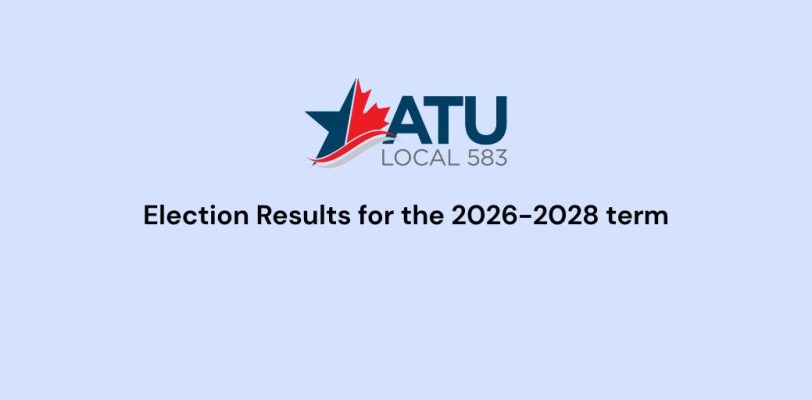 ATU Local 583 Executive Board and Shop Steward Elected Representatives January 1, 2026 to December 31, 2028 President/Business Agent – Mike Mahar Executive Vice President/Assistant Business Agent – Renée Dunn Financial Secretary/Treasurer – Harry Lew Recording Secretary, Maintenance/Office – Suvinder … Read More